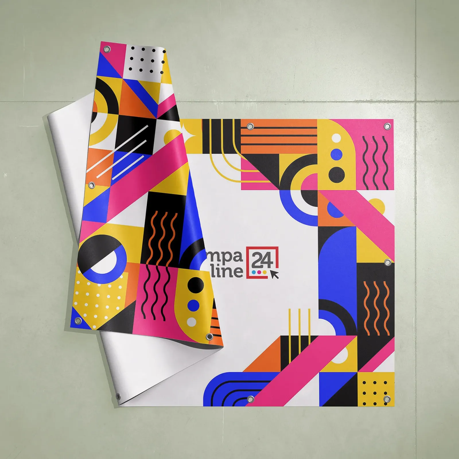 • Occhielli metallici – per appendere il banner ovunque, con facilità.