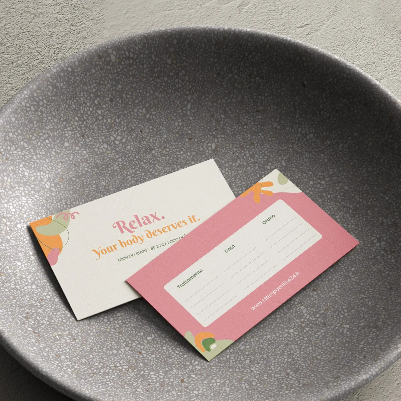 Con i biglietti appuntamento personalizzati ogni seduta è sotto controllo — per te e per i tuoi clienti. Un piccolo promemoria che parla della tua professionalità: ideale per centri estetici, studi medici e professionisti che vogliono gestire il tempo con stile e aiutare i clienti a non perdersi nessun trattamento.