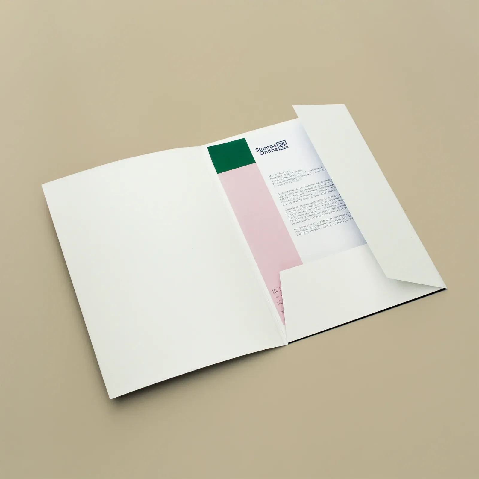 Disponibili in due formati22,5×32 cm con 2 alette  oppure 23×31 cm con 2 alette e intaglio porta biglietto – sono perfette per fiere, meeting, presentazioni aziendali o eventi dove l’ordine e l’efficacia della comunicazione fanno la differenza.