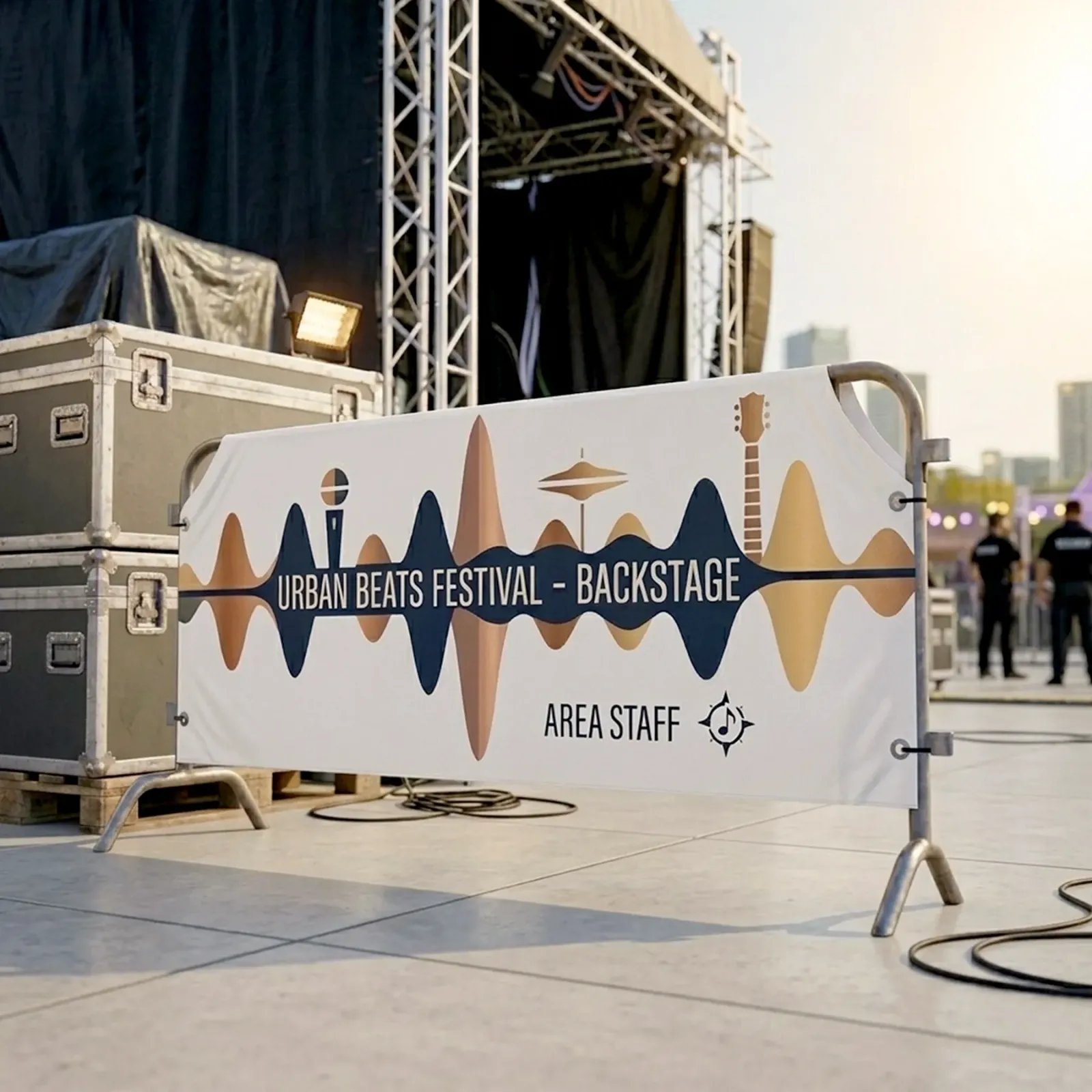 I copri transenne in PVC trasformano le barriere in un efficace strumento di comunicazione. Progettati per adattarsi perfettamente alle transenne urbane, permettono di decorare, segnalare e promuovere con semplicità. Resistenti e ideali per uso esterno, sono perfetti per concerti, manifestazioni e tutte le attività con presenza di pubblico.