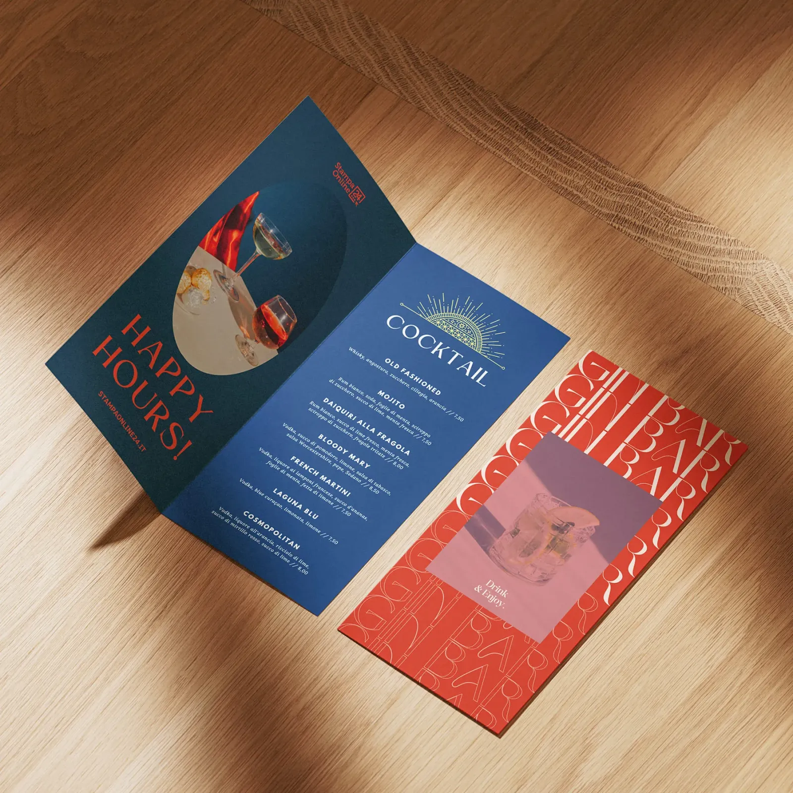 Affidati a StampaOnline24 per creare drink list che parlano davvero del tuo locale: professionali, resistenti, impeccabili in ogni dettaglio. Lascia che il tuo menu faccia il primo brindisi con il cliente – inizia a configurarlo ora.
