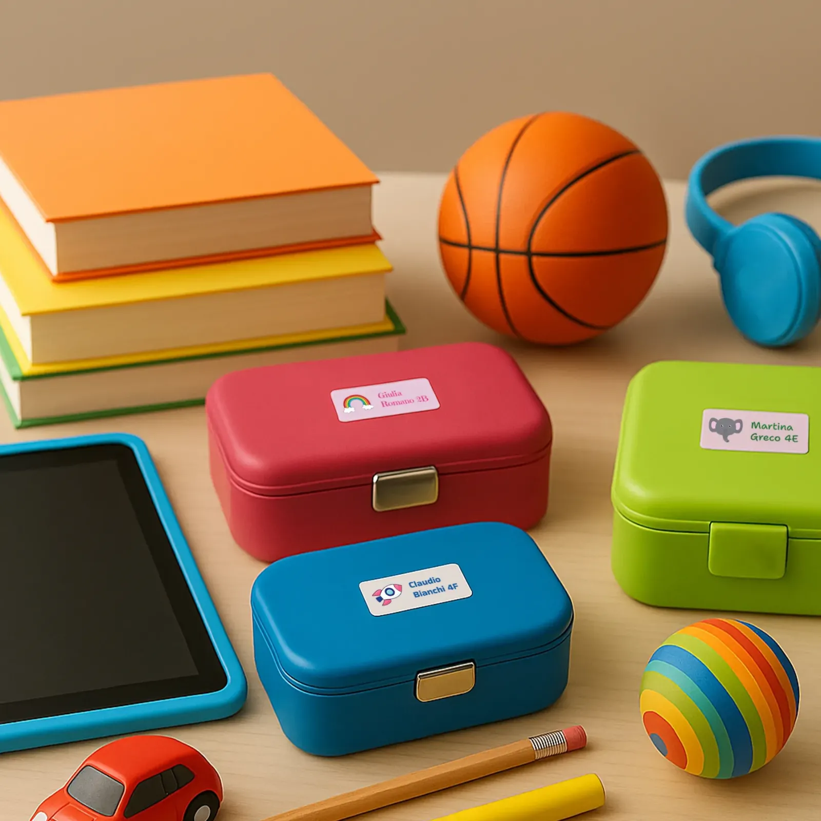 Pratiche, resistenti e personalizzabili: le etichette adesive con nome, in foglio da 24 pezzi, sono perfette per bambini, ideali per contrassegnare libri, astucci, stoviglie, attrezzature sportive e materiali scolastici. Realizzate in PVC antigraffio e resistente all’acqua, mantengono colori brillanti, sono lavabili e aderiscono a plastica, carta, legno, metallo e vetro (non adatte a tessuti). Semplici da applicare, sono perfette per asilo, scuola materna ed elementare, sport e attività estive.
