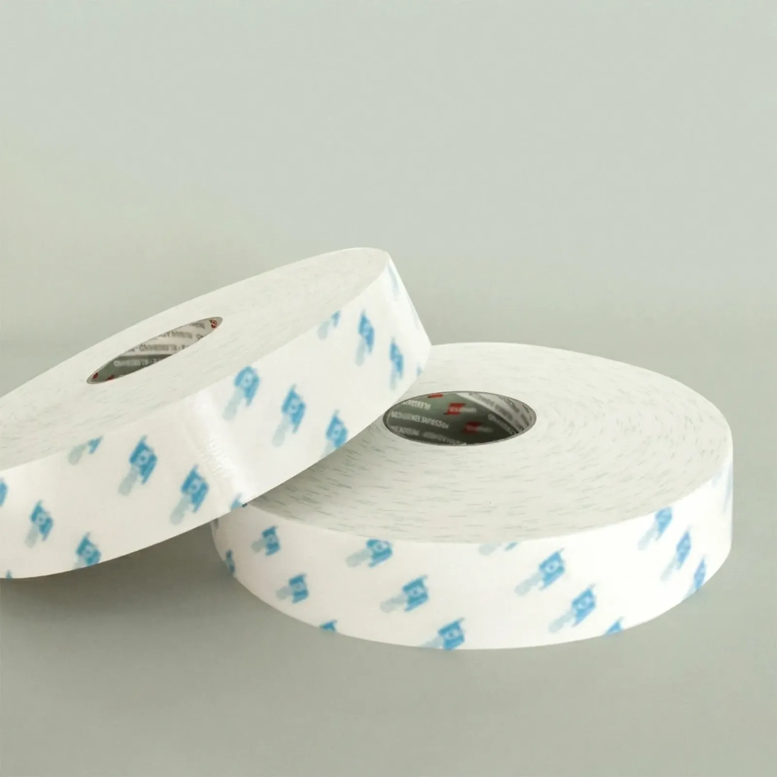 Nastro biadesivo spugnoso 25 mm x 50 m (1100μm - micron) in schiuma di polietilene bianca a cellule chiuse, con adesivo acrilico su entrambi i lati. Garantisce elevata adesività iniziale anche su superfici ruvide.
