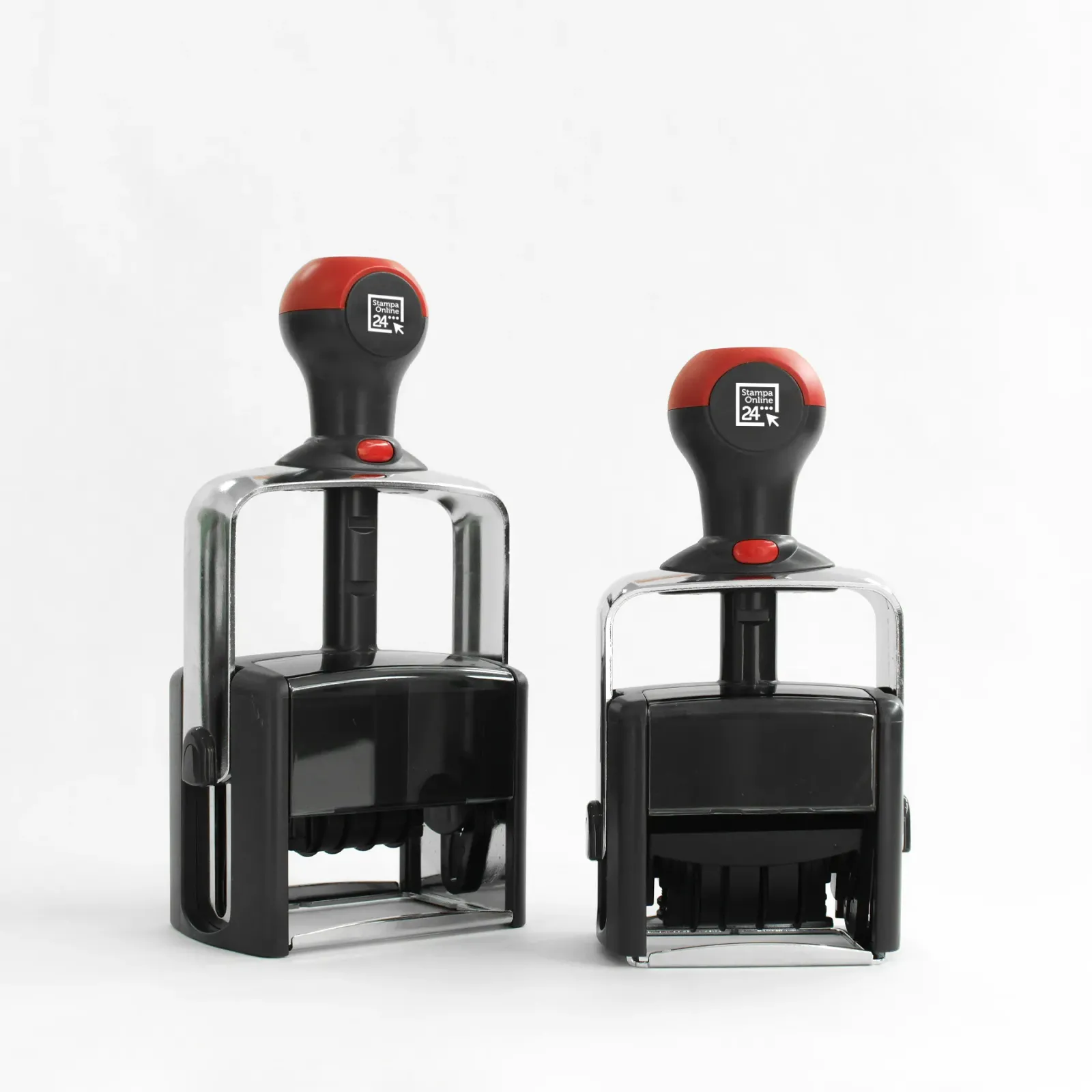 Se cerchi un timbro datario autoinchiostrante spazioso e robusto, il modello da 60x40 mm in metallo è la scelta ideale. Offre una stampa personalizzabile con fino a 6 righe di testo (3 superiori + 3 inferiori alla data). La struttura in metallo garantisce durata anche in contesti lavorativi intensi.